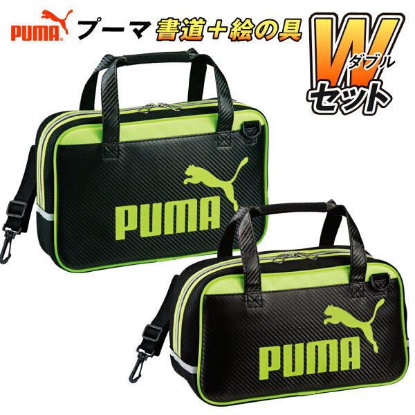 プーマ Wセット(書道セット+絵の具セット) ●学校教材・絵画造形教室向け バッグの特徴(書道セット、絵具セット) ①生地ケースはPUMAのバッグやペンケースで人気のカーボン柄の合皮生地を使用しています。